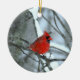 Fotoprydnad. Denna är en älskvärd kardinal i New England under en snöstorm.