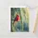 En pulserande röd kardinal går på ett skickligt sätt på den ömtåliga grenarna av en vig träd, dess slående fjädrar som på ett utmärkt sätt kontrasterar med de mjuka, flytande löven. Den här scenen med goda naturförhållanden fångar fåglarnas fredliga elegans i deras naturliga livsmiljö.