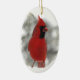 Den här helgdag har en strålande röd kardinal. Han är verkligen kung på hobbyfåglar! Här kör han på en snöräl som äter solrosfrön från svart olja medan vintern snö snurrar runt honom. Kommer han inte att vara härlig från din Julgran?