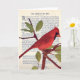 En amerikansk röd fågel som också är känd som en kardinal finns på både framsidan och insidan till vänster på mitt vykort. Kortet är tomt på insidan. Anpassa med din egen text.