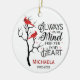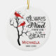 Röd kardinalminnesprydnad. Alltid i mitt hjärta. Anpassade med namn och data.