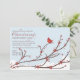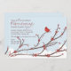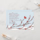 Mot en blå himmel bildar graciösa grenar med små blommor och en röd kardinal bakgrunden för din personliga text på denna fantastiska inbjudan. Det vita KORSET kan förstoras, förminskas eller TAS BORT. Lämpar sig för båda könen. Kortet är lätt att anpassa med din text, teckensnitt, typsnittsfärg och val av sex papperssorter.