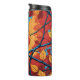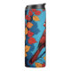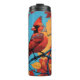 En vacker röd kardinalperk mellan orange och guld löv, med blå himmel bakom sig, på denna vackra termiska tumlare. Perfekt för alla som kärlek fåglar, natur och utomhus.