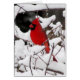Den Male kardinalen gör en trevlig kontrast, med hans ljusa röda fjädrar, mot de snöig grenarna lite varstans.
