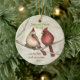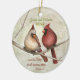 En vit keramisk julprydnad med en klassisk vattenfärgsmålning av A. E. Väster av ett kardinalpar.