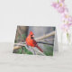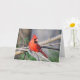 Ljust röd kardinal sticker ut på glatt gratulationskort. Perfekt för alla möjliga tillfällen.