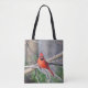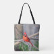 Ett vackert porträtt på nyttigt väska, röd norrkardinal presenter. Idealisk presentidé, för dem som kärlek de här otroliga fåglarna!