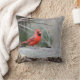 Livligt röd kardinal på skogsscenen, ger dekorativ kudde en hemlig beröring. Idealisk gåva till dem som kärlek naturen!