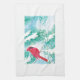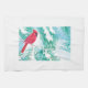 Denna handduk är designad med en röd kardinal sitta på ett snö täckt gren i gräs träd. Kardinalen är sitta och tittar på när snö flingor faller från himlar. Marken är täckt med snö.