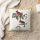 Kardinaler Grosbeak Pillow i flera stilar/storlekar/vävnader. Söt kudde skildrar ett manligt och kvinnligt kardinalpar på en gren i träd. Detta är ett digitalt återgivet Audubon-tryck som är offentligt. Framsidan av gräns och hela baksidan av kudden är en söt senap-gult.