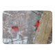 En kardinal under flygning medan den andra sitter och funderar över vad man ska göra.