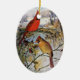 En para av nordliga kardinaler (Cardinalis cardinalis) perch på en robuske i denna wintry plats. En vintageillustration från 1915.