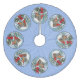 Ett par nordliga rödkardinaler på ett vitt betesstaket som är täckt av snö och som är förlagt med julgranar och en ljusröd båge. De höggs vid en vinterfågelmatare som dekoreras med klockor, ribbon och holly. Realistiskt konstnärligt verk skapat av naturkonstnären Crista S. Forest.