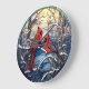 Kardinaler på en vinterväggsluss stor klocka