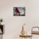 En manlig och kvinnlig kardinal satt i grenar i gräs träd på en vinterdag i kallet med grått blå, grumlig himlar. Den här konsten har en vinkling och symboliserar kallets regioner i världen.
