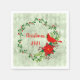 Utformning av krans med röd poinsettia och kardinalfågel på grönt i nödläge med harlequin i bleken och röd text i anpassadet