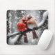En manlig och kvinnlig kardinal sitter nära på en gren som är täckt av snö och omgiven av ett serensnöfall