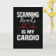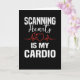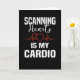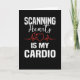 Kardiologidesign med hjärtrytm, stetoskop och säga: Scanning av hjärtan är min kardio. Ge till en hjärtoperatör, kardiolog, hjärtspecialist och läkare som opererar på hjärtat vid operation.