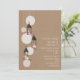 En bröllopsinbjudan med en kardstock inspirerade bakgrunden på framsidan och baksidan. Främre illustrationer av pappra lyktor och lyktor fyllda med blomsterarrangemang. Anpassa texten med detaljer om ditt speciella tillfälle.