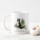 Celebrate the fearless spirit of the Karelian Bear Dog with this beautifully illustrated mug. The front features a striking black and white Karelian Bear Dog set within a peaceful northern woodland scene, painted in a soft storybook watercolor style that reflects the rugged forests of the breed’s Finnish homeland.
