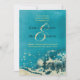 En elegant och en modern bröllopsinbjudan med en akvblåturkos målad vattenfärgsbakgrund med en champagne guld surfa-våg som kraschar på grund. En stor guld-ampersand med ditt fullt lyfter fram bröllopsinbjudan.