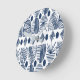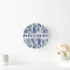 Karibiska stammudcloth: White, Navy Blue Rund Klocka