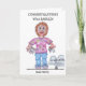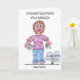 Karikatyr av kvinna som precis klarat förarprovet kort