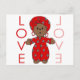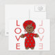 Röd afrikansk pappersdocka med ordet "kärlek" på sidorna.