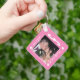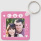Dubbla nyckelring, nyckelring presentidé. Byt ut fotot på framsidan och baksidan. Kärlek alltid. Kärlek dig. Lägg till initialer. Rosa och vit med kärlek hjärtan. För den du kärlek.