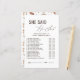 Firar bruden som ska vara med vår charmerande Möhippa sa att hon sa att spel! Gästerna kommer att få gissningar om vem som sa eller gjorde vad med denna roligt och insiktsfulla frågor om lycklig-paret. Det här spelet är ett bra komplement till din möhippa-festligheter. Det är ett vackert spel för vilda blommor. Det är ett trevligt sätt att lära sig mer om bruden och trippen samtidigt som man skapar minnesvärda stunder. Låt roligten börja och se vem som vet paret bäst!