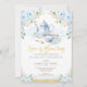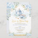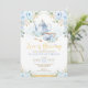 Tea party tog upp möhippa inbjudan i blått och guld. Klicka på knappen "anpassa ytterligare" om du vill ordna om och formatera stil och placera texten. Kommer med ett matchande blommönster baksida.