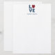 Sprid lite kärlek med personlig. Denna papper har en bedrövad bild av det moderna KÄRLEK-som finns i stil överst med brev i marinblått och "O" i rött hjärta. Ditt namn eller annan text visas nedan i ett samordnande teckensnitt med marin blå skrivmaskin stil. Skriva brev till vänner eller inkludera det här kontoret med bröllopsinbjudningar för att inkludera hotell eller annan information till dina gäster.