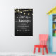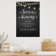 Kärlek är Brewing, Modern Rustic, Bröllop Rehearsal Dinner Welcome Poster, i rustisk svart krita, täcksträng ljus temed.