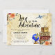 Kärlek är ett inbjudningskort för möhippan i äventyr. Möhippa av temat äventyr med av bagageglob flygplanspass med vattenfärgsdesign för blommigt.
