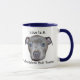 Det här är ett vackert ansikte av en blå Stafford Bull Terrier-valp med logotyp som säger att kärlek är en Stprisdshire Bull Terrier.