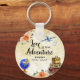 Kärlek är ett äventyrlig bröllopsfest-nyckelring. Vintage resväskor glob flygplan pass vattenfärg blommig design.