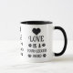 Kärlek är ett fyra Ord Mugg som ligger på båda sid