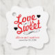 Gamla Fashioned Kärlek är Sweet Favor Tags (Black/Red/White)...roligten och chic kärlek är söta favoritmärken som har en gammaldags känsla för dem med en romantisk känsla från de två hjärtan och som är idealiska för bröllopsfavoriter eller en bröllop-godis-pub/buffetfullt av choklad, sockrar, läppar, flis och socker. Låt dina gäster ta med sig en behandling hem med dem för att minnas din bröllop. Utformningen har en matris av visstiskt typsnitt med bruden och brudgummen namn och bröllop-datumet. Underbar för ett godistemat bröllop. Perfekt för ett destinationsbröllop. Perfekt för vilken brud eller triom som helst med en söt tand. Underbar idé även för en möhippa- eller bachelorettfest. Helt anpassade...Byt bara ut namn och data och era favorittaggar är redo att använda. Finns i ett stort antal färg för att matcha bröllop färg. Besök WindyCityStationery.com för hela raden "Kärlek Is Sweet" i ett stort antal färg och matcha "Kärlek Is Sweet" på porten frimärke, tack vare kort, returetiketter, spara datumen med mera.
