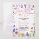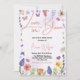 Blommiga bröllopsfestinladningar kärlek är i blomning brunch och bubbel vattenfärg vår lila syren lavendel vild blomsterträdgård vår utomhus Fira kärlek i full blom med denna eleganta Blommiga Bröllopsfestinbjudan, perfekt för en vår- eller trädgårdsinspirerad "Brunch och Bubbly" -fest. Denna charmiga design har handmålade vilda blommor, vattenfärg fjärilar och den romantiska frasen "Kärlek är i blom", vilket gör den idealisk för att hedra den blivande bruden med stil.