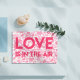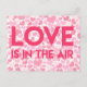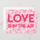 NewParkLane - vykort, med mönster av olika rosa- och färghjärtan och citat: "Kärlek är i luft" i fetstil. Cute-vykort för att skicka ut bröllop eller inbjudningskort för möhippa, eller som ett Valentindagskort.