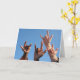 4 älskar jag dig händer mot en ljus blå himmel.