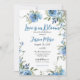 Kärlek i blått vinkort blommigt inbjudningskort för möhippan med komplimanger till blått rand på baksidan av tryckkortet. Fullständigt utskriven inbjudan. Anpassa text och typsnitt efter behov.