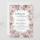 Vackert ro och inbjudningskort för möhippan har söt rosa ros, lila-fisk hydrangea, eukalyptus och annan grej som utvunnits i vattenfärger. Kärlek ligger i Bloom i en underbar typografi som tillför det vackra stil. Se samordna saker i vår butik, Enchanted Finch.