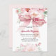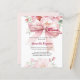 En vit elegant, dekorerad med stor rosa och rosa blommor. Anpassa och lägg till information om namn och party. Text på bågen: Kärlek är i Bloom Back: mjuk rosa bakgrund. 1 lakan = 1 inbjudan tryckt kant till kant.