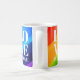 Gay pride Mugg är dekorerat med KÄRLEK IS KÄRLEK i fetstil med vit typografi på en grundvattenfärg med rött, orange, gult, grönt, blått och lila. Ursprunglig vattenfärg © Michele Davies.
