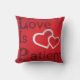Kärlek är patient på en röd hjärtbakgrund kudde