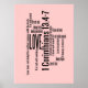 En söt som innehåller linjer från 1 korintianer 13:4-7, "Kärlek är tålmodig, Kärlek är vänlig..." placerad slumpmässigt över utskriften. Utskriften har en rosa med svart text.