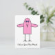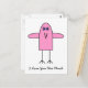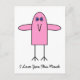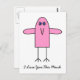 Jag Kärlekar dig så mycket. Vykort. Kute komisk bild av rosa fågel med utdragen vinge. Enkelt minimalistiskt stil-ton. Helt anpassade. Textläsningar: "Jag Kärlekar dig så mycket".