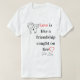 Den här t-shirten har ett fet påstående om kärlek. I texten, som troligen finns i ett avslappnad font, står det "Kärlek är som en vänskap som brinner." Den här lekande metaforen antyder att kärlek bygger på en grund av vänskap, men antänder med ytterligare passion och intensitet.