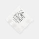En klassisk vit brölloppsservett med "Kärlek är sött" i en blandning av elegant skrivstil och fet typsnitt, accentuerad av en liten hjärtdetalj. Paret namn och bröllopsdatum visas under en tunn avdelande linje, vilket skapar en personlig monogram-centerdel. Perfekt för efterrätstavlor, cocktailtimme och godisbarer. All text är helt anpassningsbar.